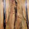 Our spalted hard maple live edge table is finished with an epoxy, and then top coated with a satin sheen water-based urethane coating. This specific type of finish is known for its exceptional durability, requiring little to no maintenance or additional care in the future.