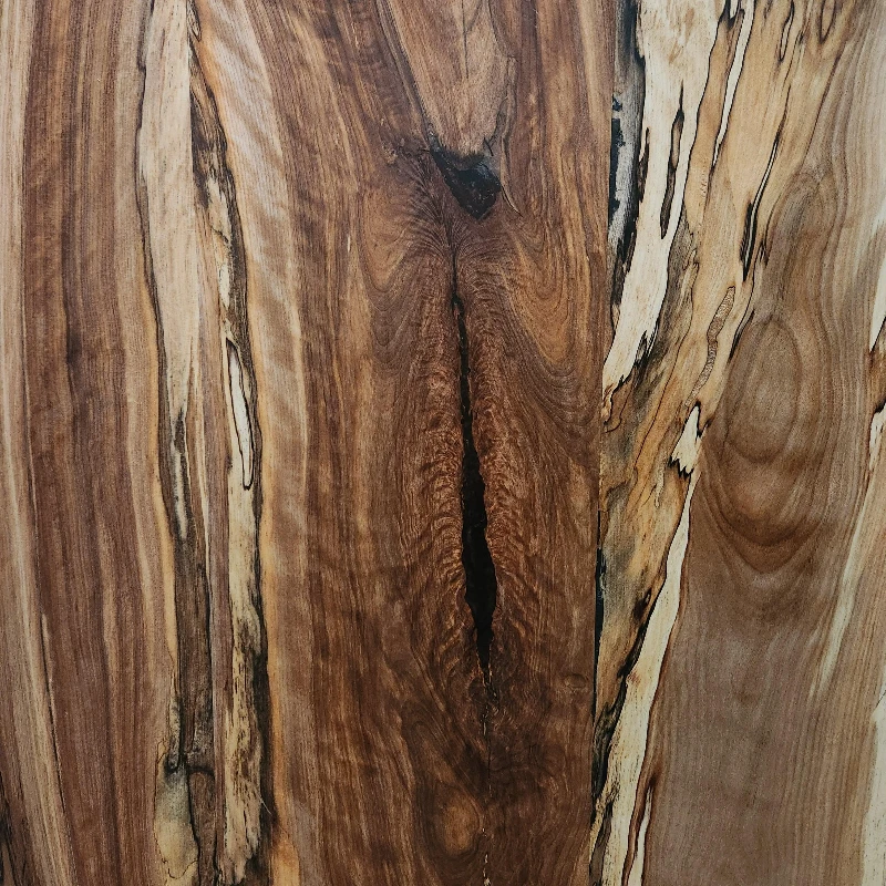 Each unique feature of the spalted hard maple, from its intricate grain variations to its distinctive knots and bark pockets, is meticulously highlighted in this piece. To preserve and accentuate these natural elements, the bark pockets have been thoughtfully filled with a clear epoxy, adding a touch of sophistication while maintaining the authenticity of the wood’s character.
